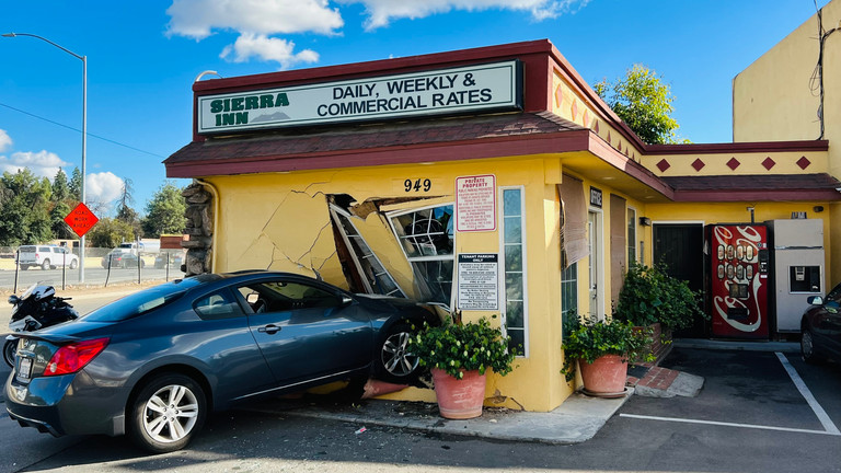 Según los investigadores, los agentes recibieron una llamada tiempo después sobre un conductor que se estrelló contra un hotel en Parkway y Olive Avenue.