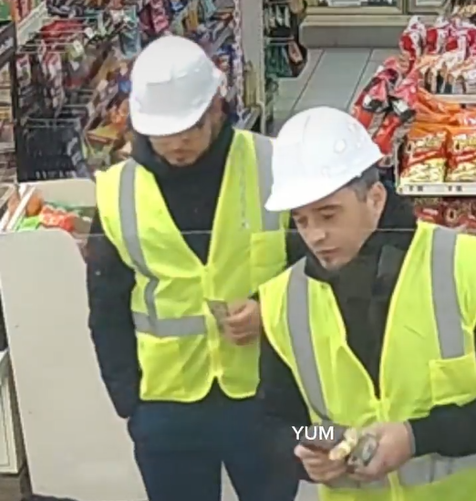 Los funcionarios encontraron un video de vigilancia que muestra a dos hombres con chalecos de construcción y cascos que distrajeron al empleado e instalaron el skimmer.