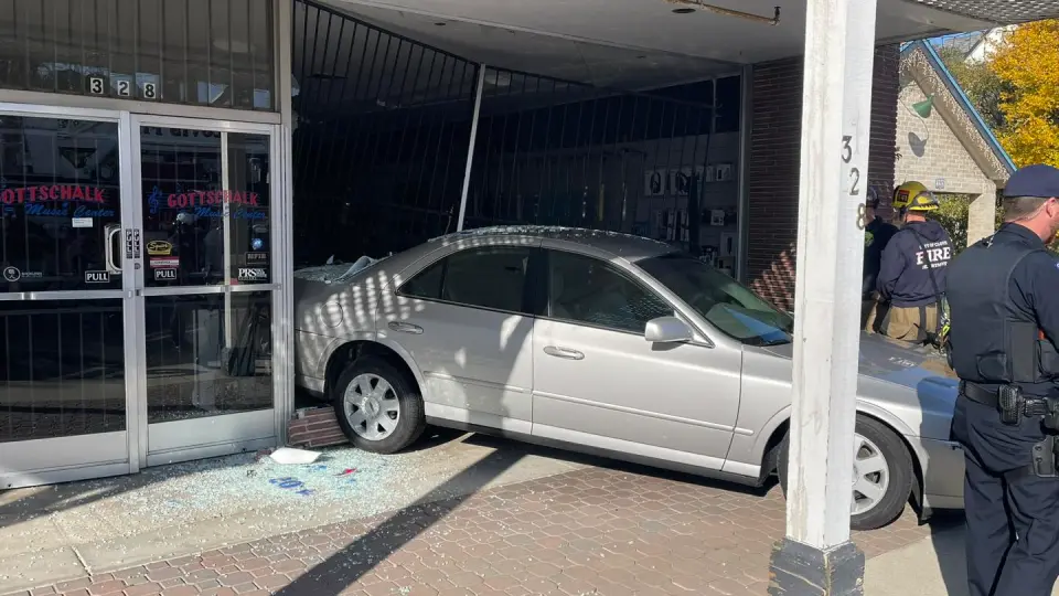 Un conductor que, según la policía, pisó por error el acelerador en lugar del freno terminó con su auto chocando contra el frente de una tienda de música Clovis.