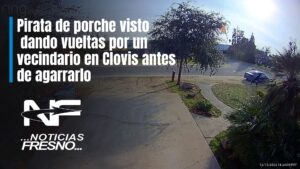 Un pirata de porche fue captado por la cámara dando vueltas en un vecindario de Clovis antes de hacer su...