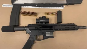 Un hombre en libertad condicional fue arrestado por estar en posesión de un arma de fuego y municiones no serializadas,...