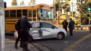 Dos vehículos chocaron en una intersección en el noroeste de Fresno, lo que provocó que otro automóvil chocara con un...